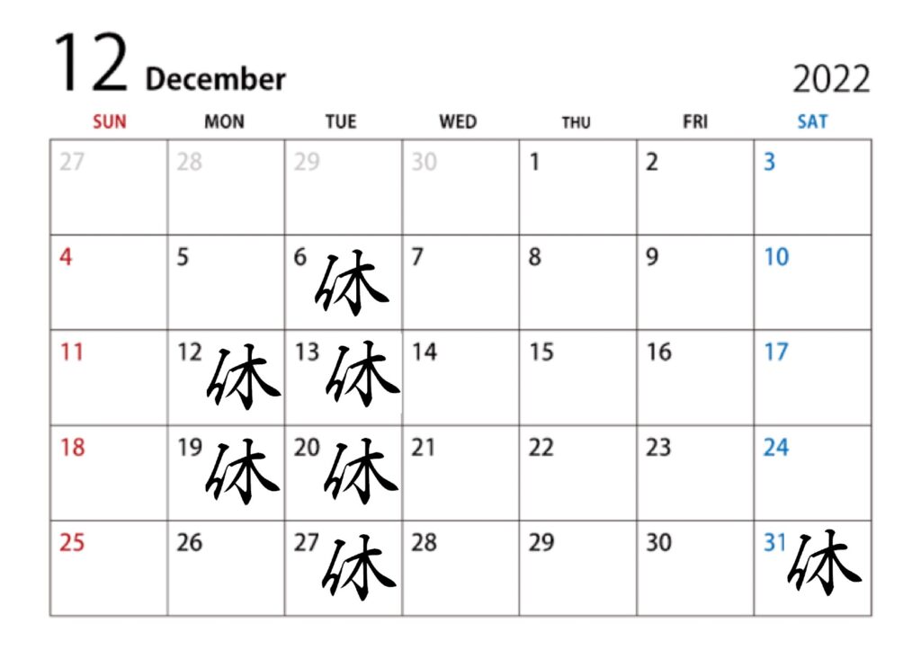 【12月のお休み】