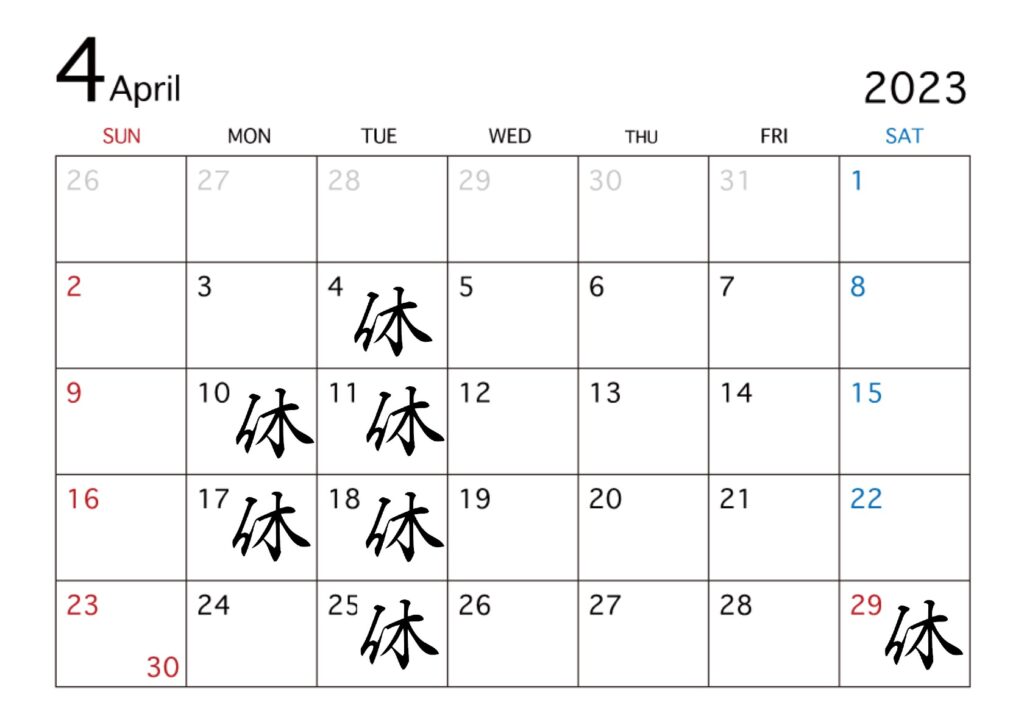 【4月のお休み】
