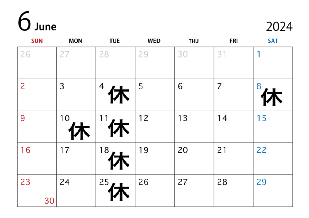 【6月のお休み】